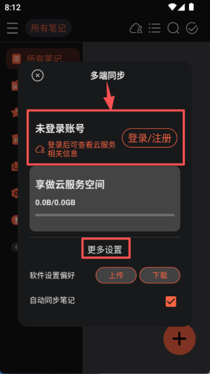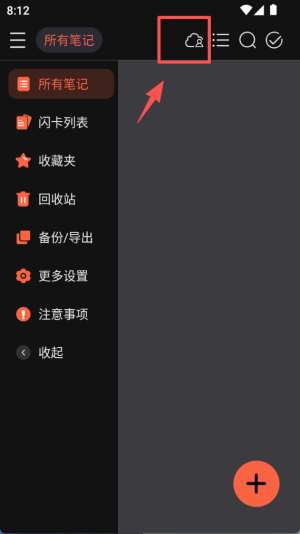 1、在 “所有笔记” 页面,点击上方的云形图标,可进入多端同步相关的设置界面。