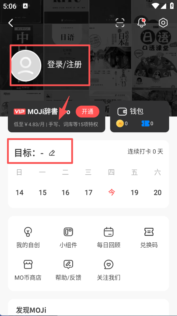 4、找到个人相关界面,完成登录 / 注册后,可设置学习目标,同时使用自创、小组件等功能拓展使用场景。