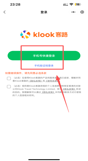1、勾选同意隐私条款后点“登录”,用手机验证码完成账号注册。