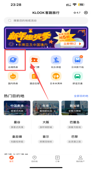 如何首次登录KLOOK客路旅行并搜购出境热卖门票
