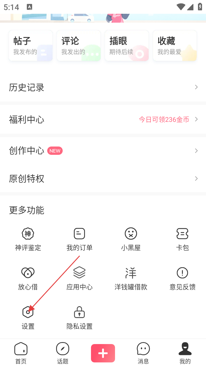 2、在“我的”页面,有【帖子】【评论】等板块,还有【设置】选项,点击【设置】可进入设置界面。