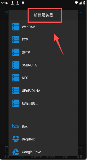 2、选择“新建服务器”选项,添加新的媒体服务器。