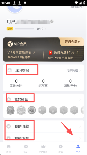 4、查看进度:在“个人”页面查看“练习数据”和“我的收藏”跟踪进度。
