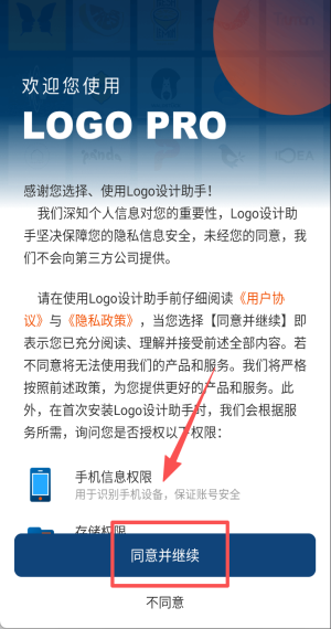 1、阅读用户协议与隐私政策后点“同意并继续”,授权设备信息保障账号安全。