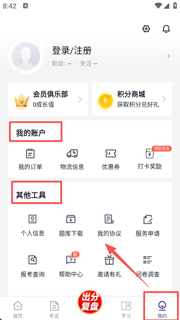 4、进入 “我的” 界面,能看到会员俱乐部、积分商城入口,同时可在我的账户、其他工具板块里管理订单、查询信息。