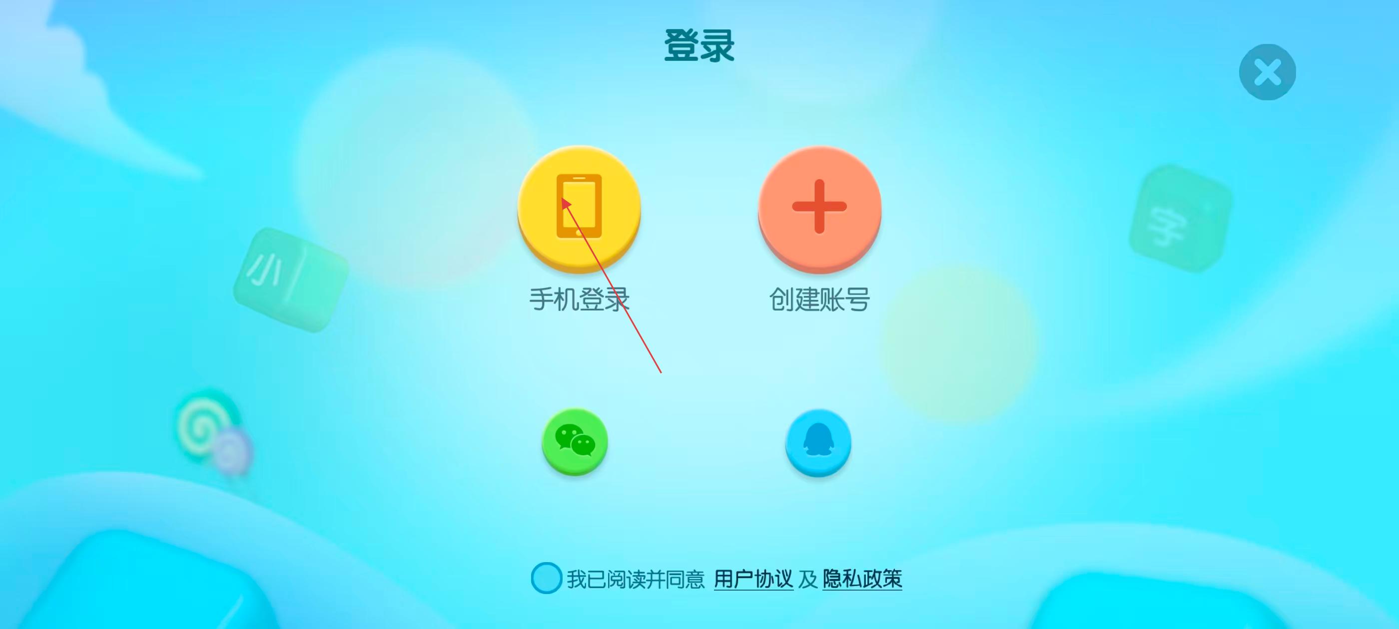 2、在登录界面,可选择手机登录或创建账号,也可通过微信、QQ登录,登录前需同意《用户协议》及《隐私政策》。