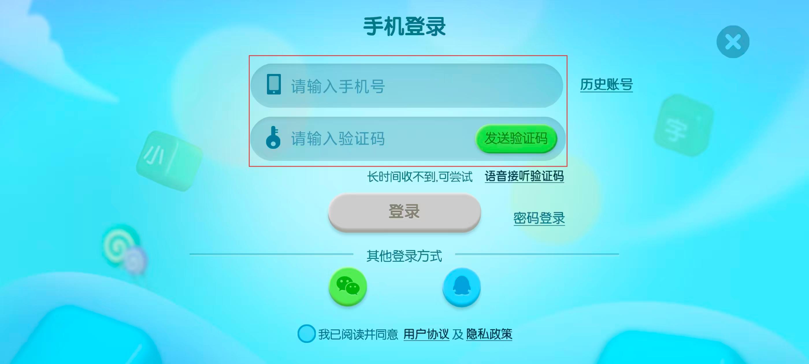 3、在手机登录界面,输入手机号和验证码,勾选同意协议后,点击【登录】即可完成登录。