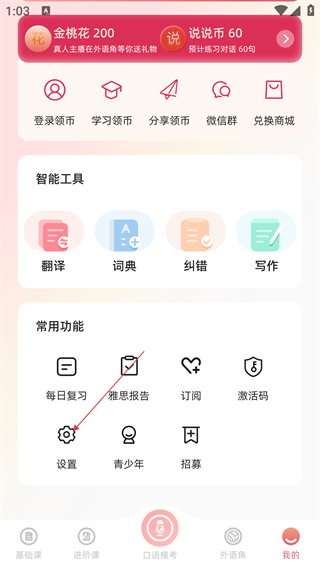 2、在【我的】页面,可找到【设置】选项,该入口用于管理账号及应用的各类配置。