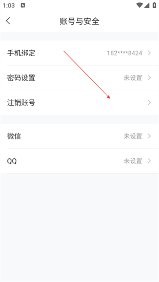 4、进入【账号与安全】页面,可看到【注销账号】选项,还能管理手机绑定、密码等账号信息。