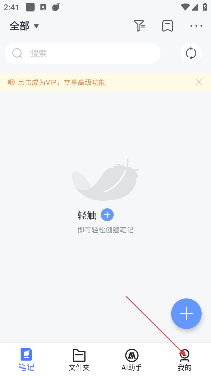 1、在笔记主界面,点击右下角【我的】选项,进入个人相关界面,可进行账号等操作。