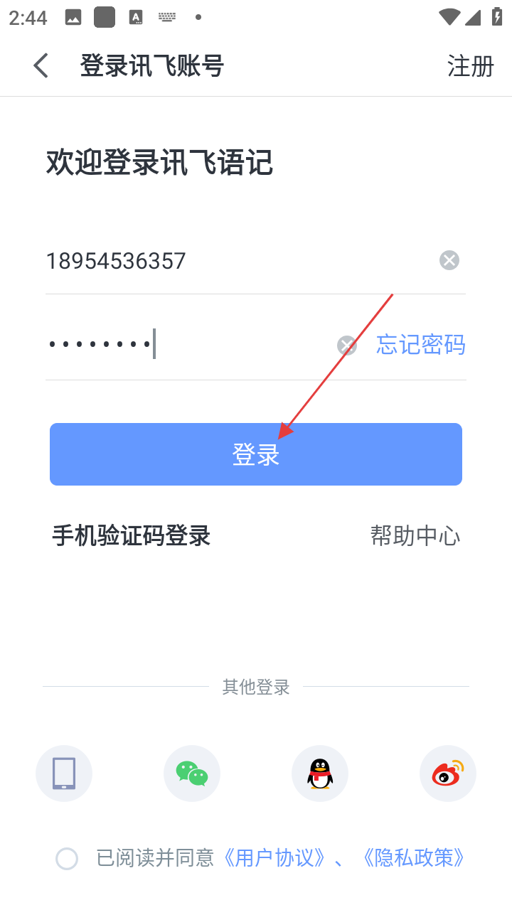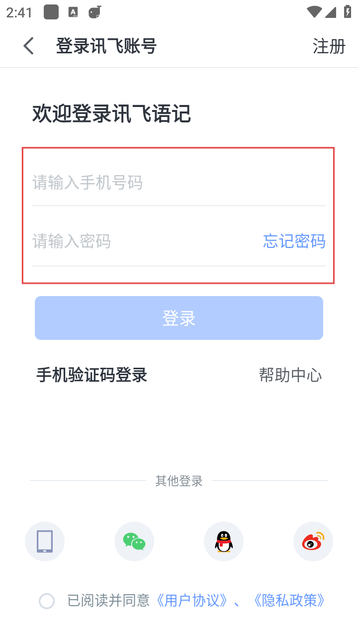 讯飞语记app怎么登录账号和密码