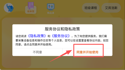 1、阅读隐私政策与服务协议后,点击同意并开始使用。