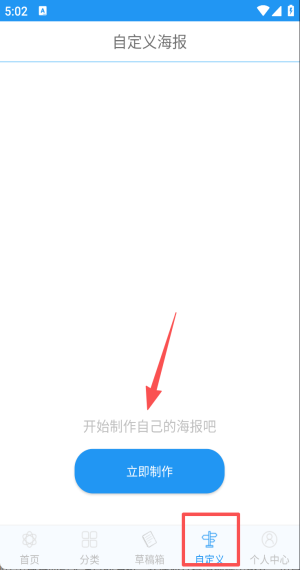4、打开自定义海报页点立即制作,从空白画布自由拖拽,完成专属设计。