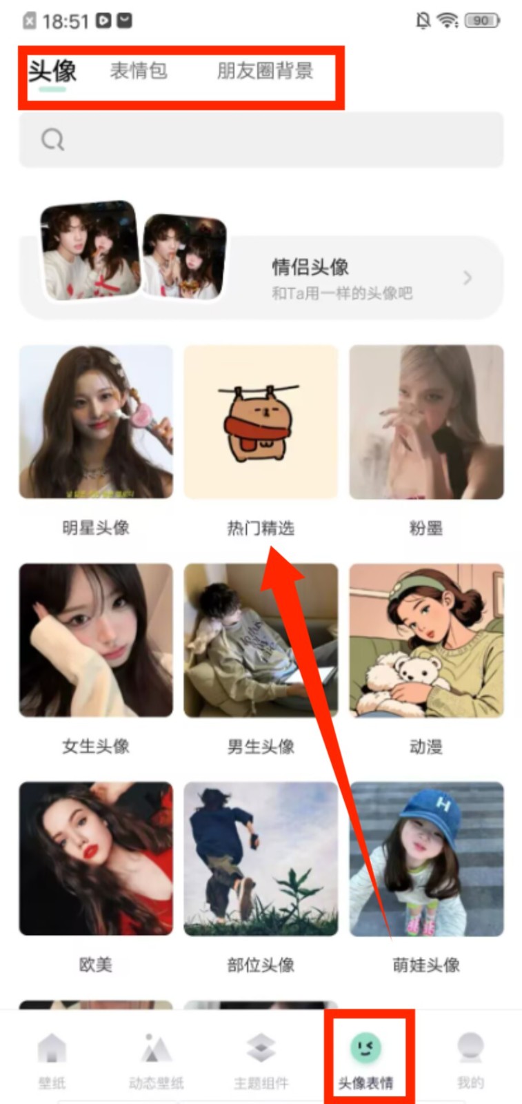 4、进入头像表情页面,在 “头像”“表情包” 标签下,可挑选不同风格的头像资源,更换个人展示形象。