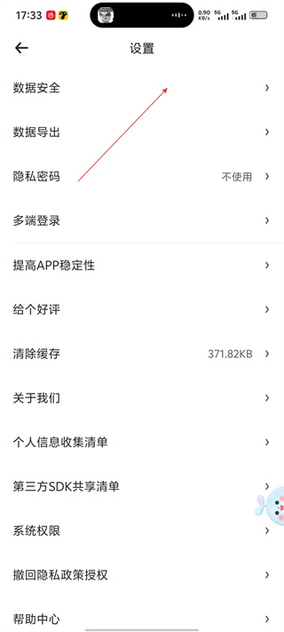 3、在设置页面,可进入【数据安全】选项,管理账号的数据安全相关设置。
