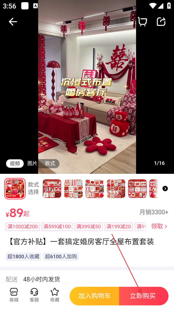 3、在商品展示界面,点击【官方补贴】-【一套搞定婚房布置】商品,进入该商品详情页面。