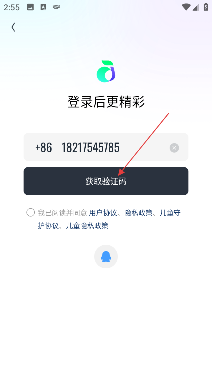 4、输入手机号码后,点击【获取验证码】按钮,等待接收验证码,以便完成登录。