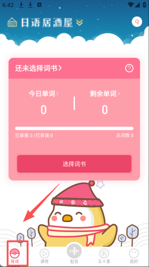 2、在日语居酒屋页面,点击“音词”按钮。选择词书开始学习日语单词,为配音打下基础。