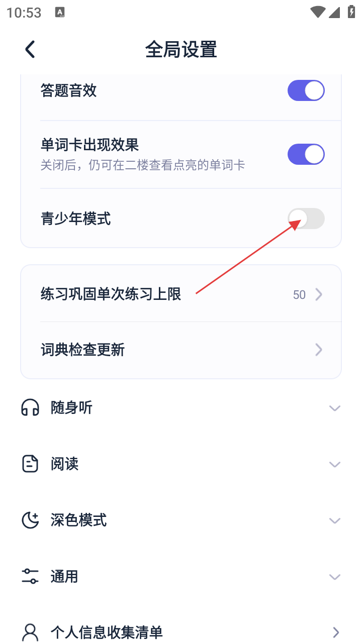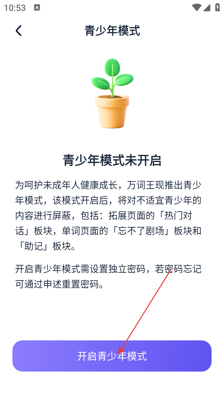 万词王怎么开启青少年模式设置