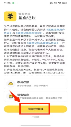 1 、首次打开应用会显示用户协议页面,底部有 “同意并继续安装” 按钮,点击后可进入后续登录流程。