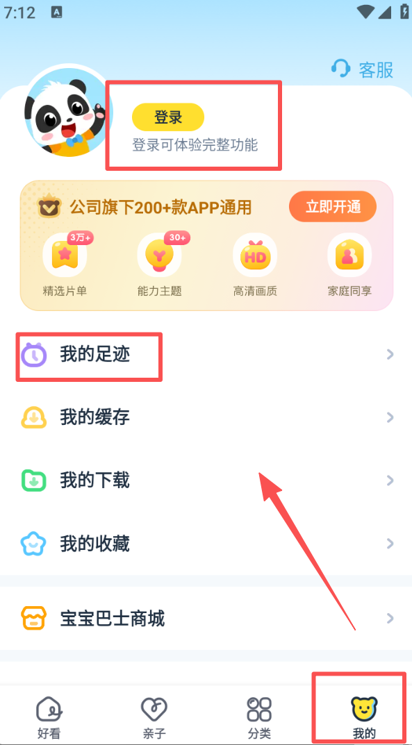 4、进入 “我的” 页面,可点击登录体验完整功能,也能查看我的足迹等信息。