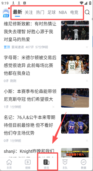 3、点击“资讯”标签,查看最新体育新闻和动态。