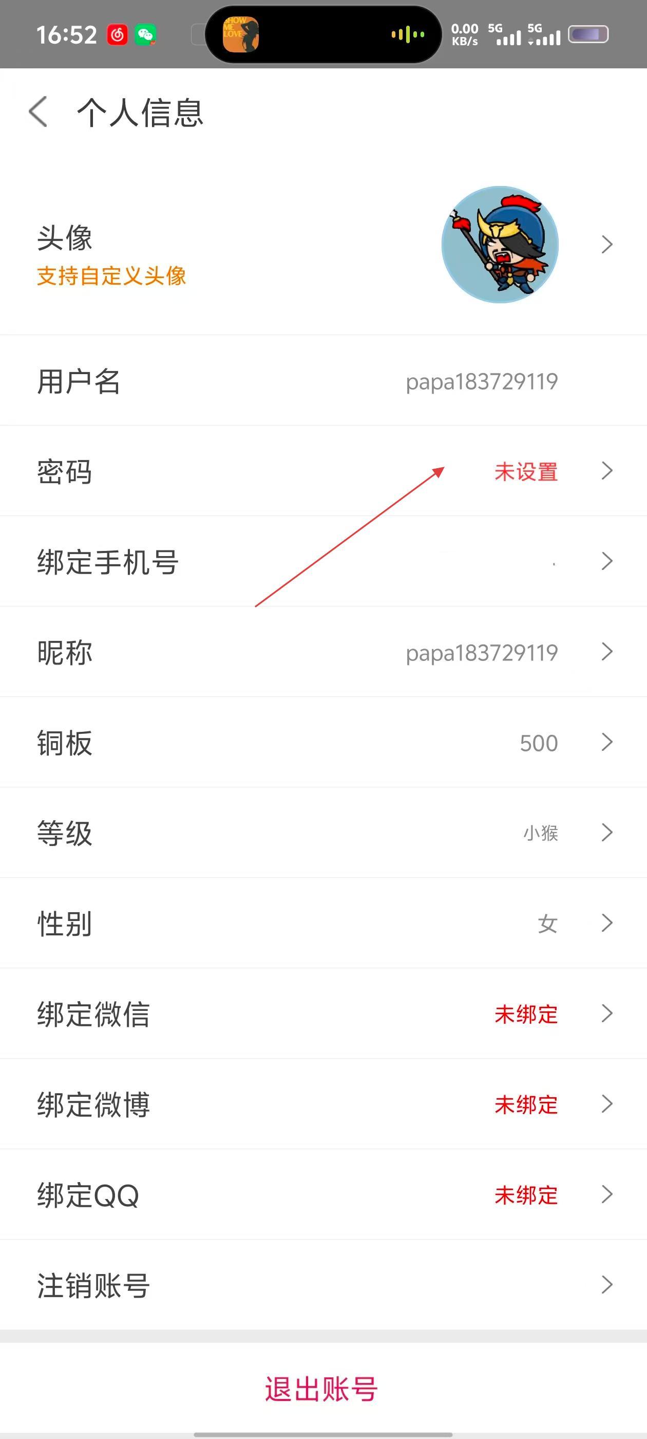 4、在个人信息页面,点击【密码】即可设置登录密码。