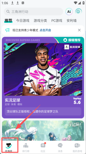 1、在游戏平台首页,点击“找游戏”图标,开始搜索游戏。