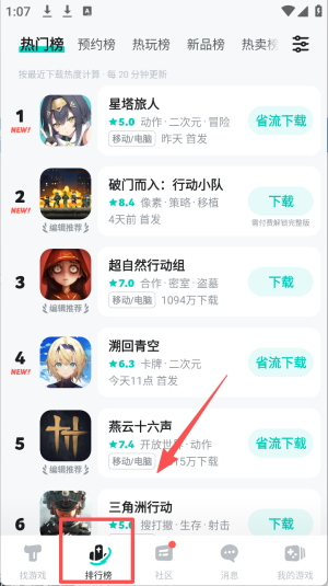 3、在排行榜页面,浏览并选择感兴趣的游戏进行下载。