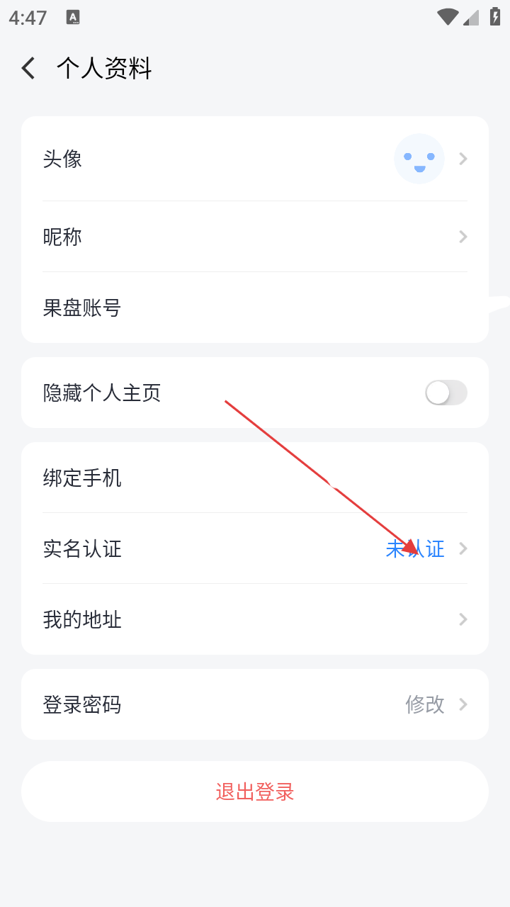 4、进入个人资料页面,可查看或编辑头像、昵称等信息,也能进行实名认证等操作。
