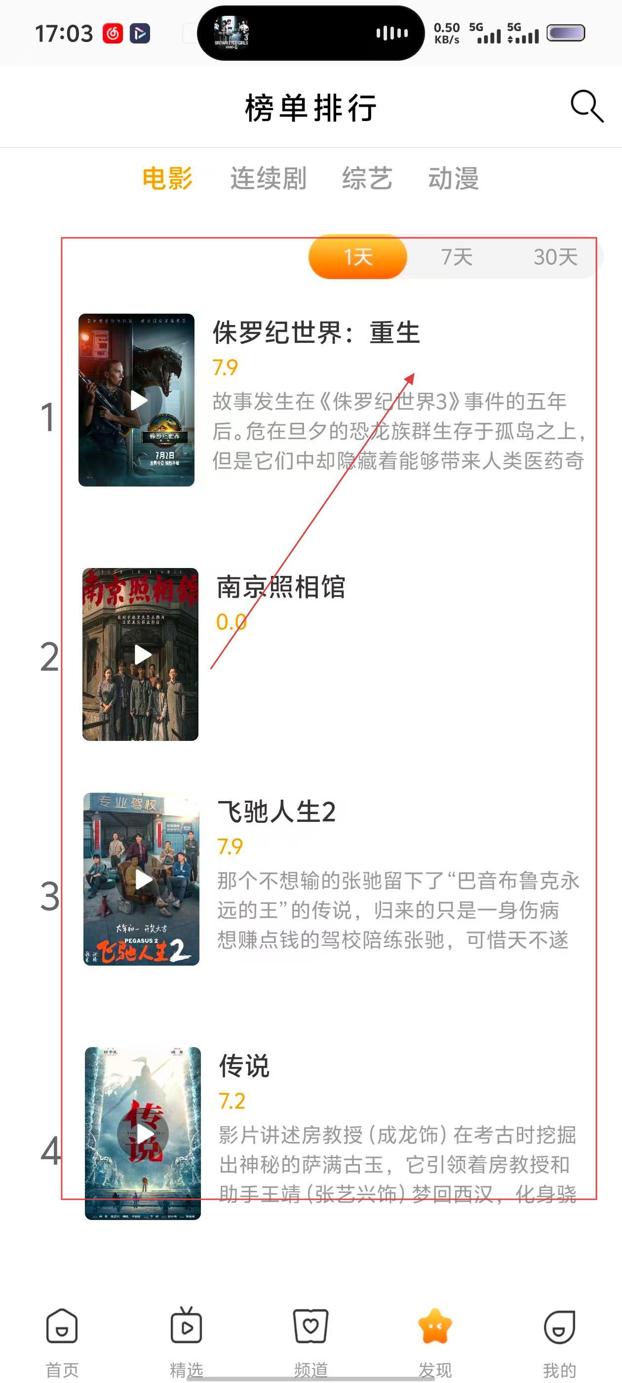 2、在主界面点击底部【发现】板块,可进入榜单排行界面。