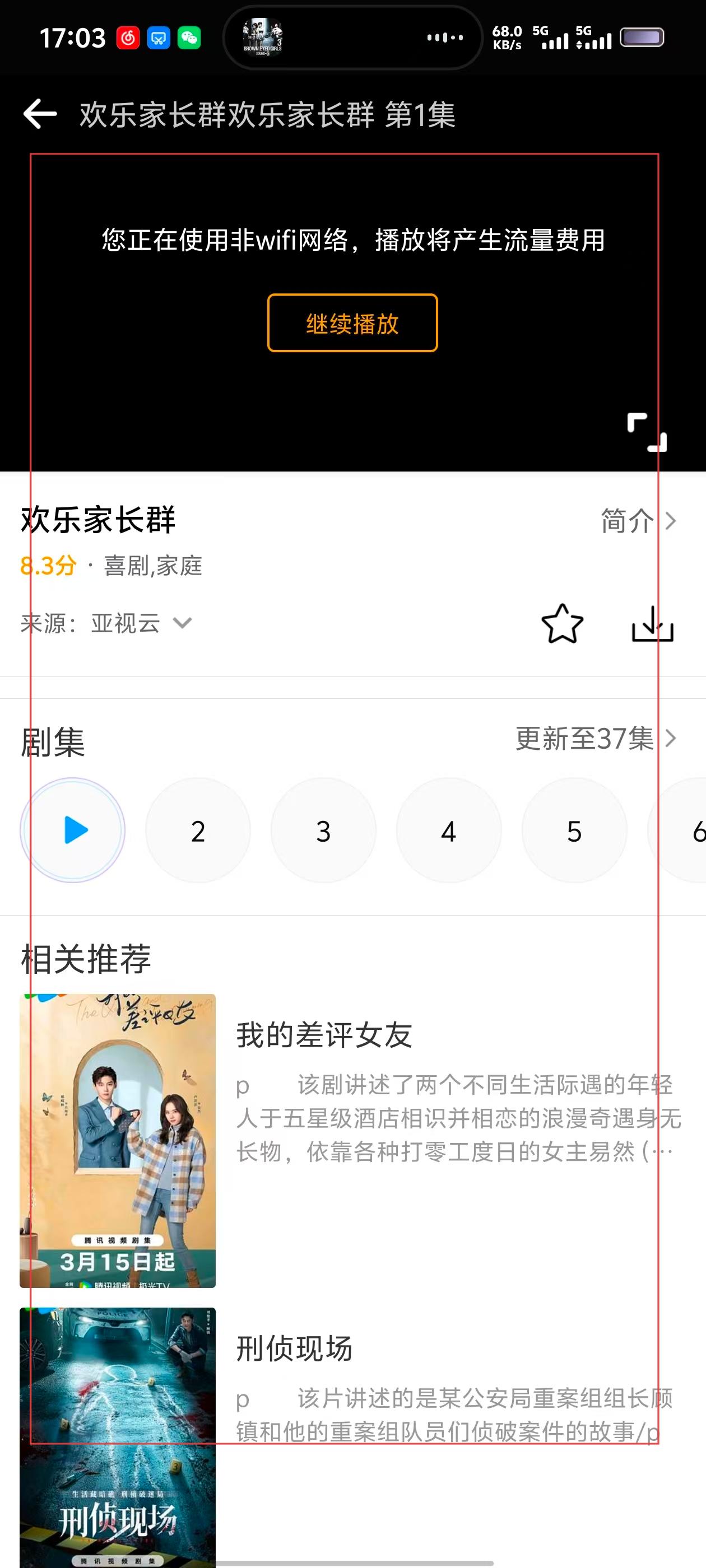 4、点击感兴趣的影视作品,点击【继续播放】即可观看,同时还可查看剧集信息和相关推荐内容。