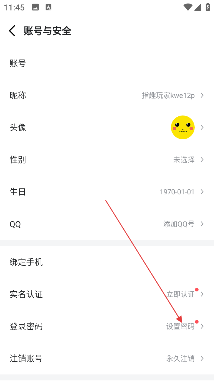 4、在账号与安全页面,若要设置登录密码,点击【登录密码-设置密码】,进行登录密码设置操作。