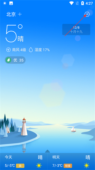 2、在天气主界面,点击右上角的设置图标,进入设置页面。