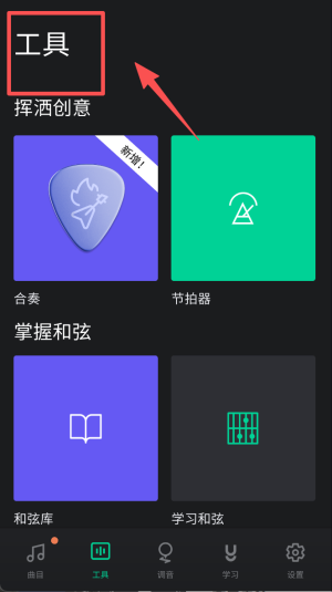 4、访问工具,点击“工具”选项,使用更多音乐创作辅助功能。
