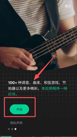 1、开始使用应用,点击“开始”按钮,进入吉他调音应用主界面。