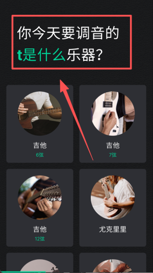2、选择乐器,点击“吉他6弦”图标,选择需要调音的吉他类型。