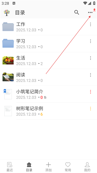 2、在目录页,点击右上角更多按钮(三个点),展开功能菜单。