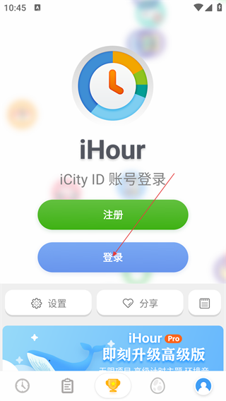 1、在iHour主界面,点击右下角人形图标,可进入账号登录注册界面,以便使用账号功能。