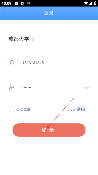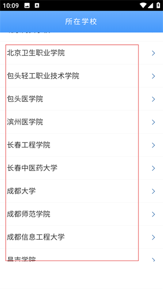 2、在“所在学校”选择界面,从列表中选定对应的学校(如示例中的“成都大学”)。