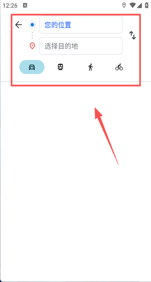 4、点“您的位置”设为起点,再选目的地即可生成驾车公交步行路线。