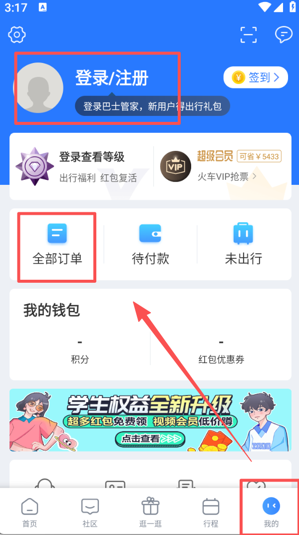 4、点击右下角 “我的”,进入个人中心,若需查看订单,可点击 “全部订单” 选项查询。