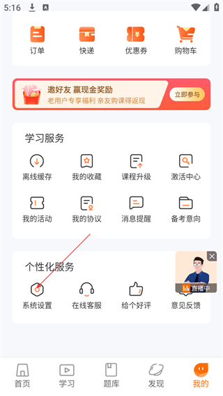2、在“我的”页面,找到并点击【系统设置】选项,进入设置页面。