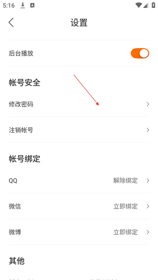3、在设置页面,选择【修改密码】选项,触发手机号码验证流程。