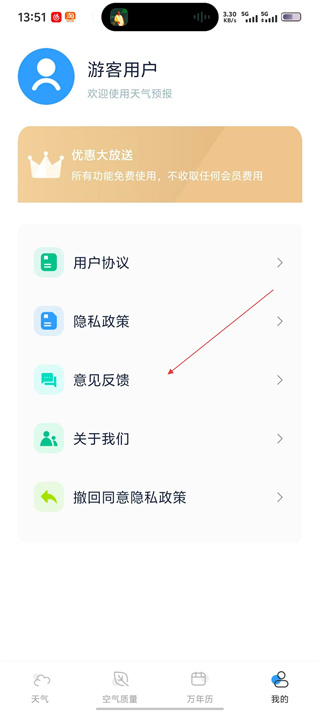星汉天气预报app怎么反馈问题
