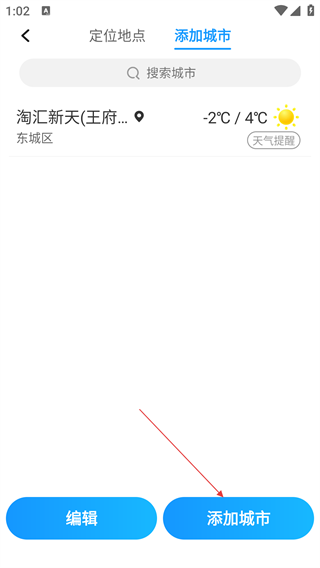 3、点击“添加城市”按钮,进入城市管理界面,准备新增关注城市。