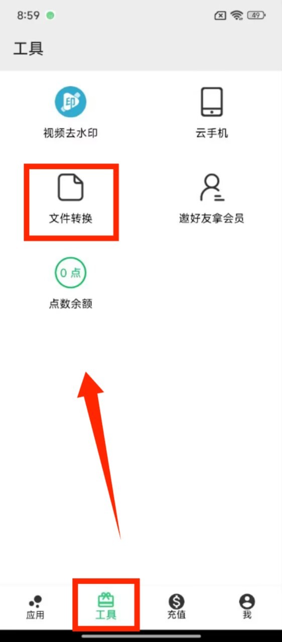 2、切换到工具页面,在 “视频去水印”“文件转换” 等功能中,选择对应工具来处理所需内容。