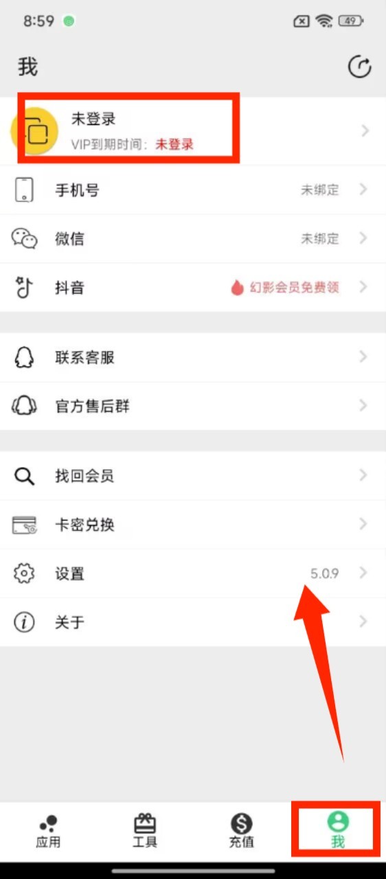 4、进入 “我的” 页面,点击 “未登录” 区域完成账号登录,可绑定手机号、微信等账号信息。