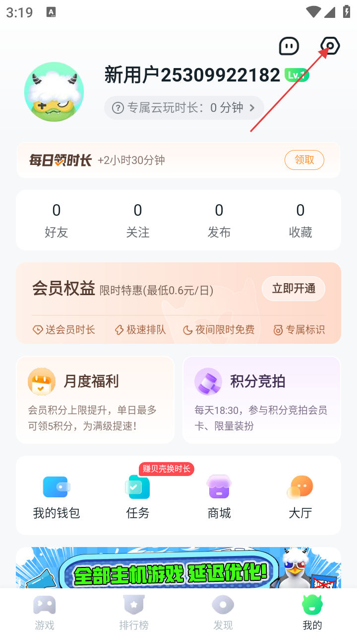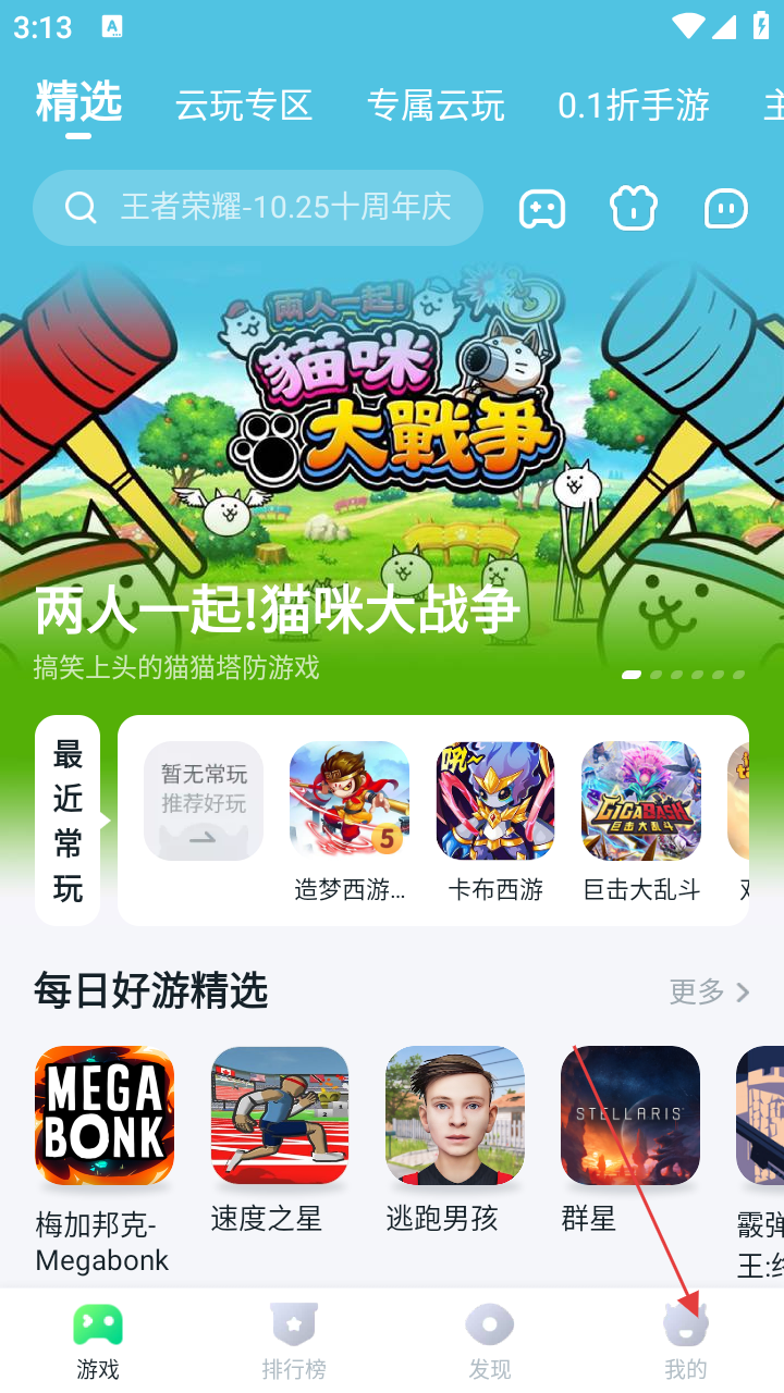 1、在870游戏盒首页,若想进入个人相关页面,点击底部【我的】,切换到“我的”页面。