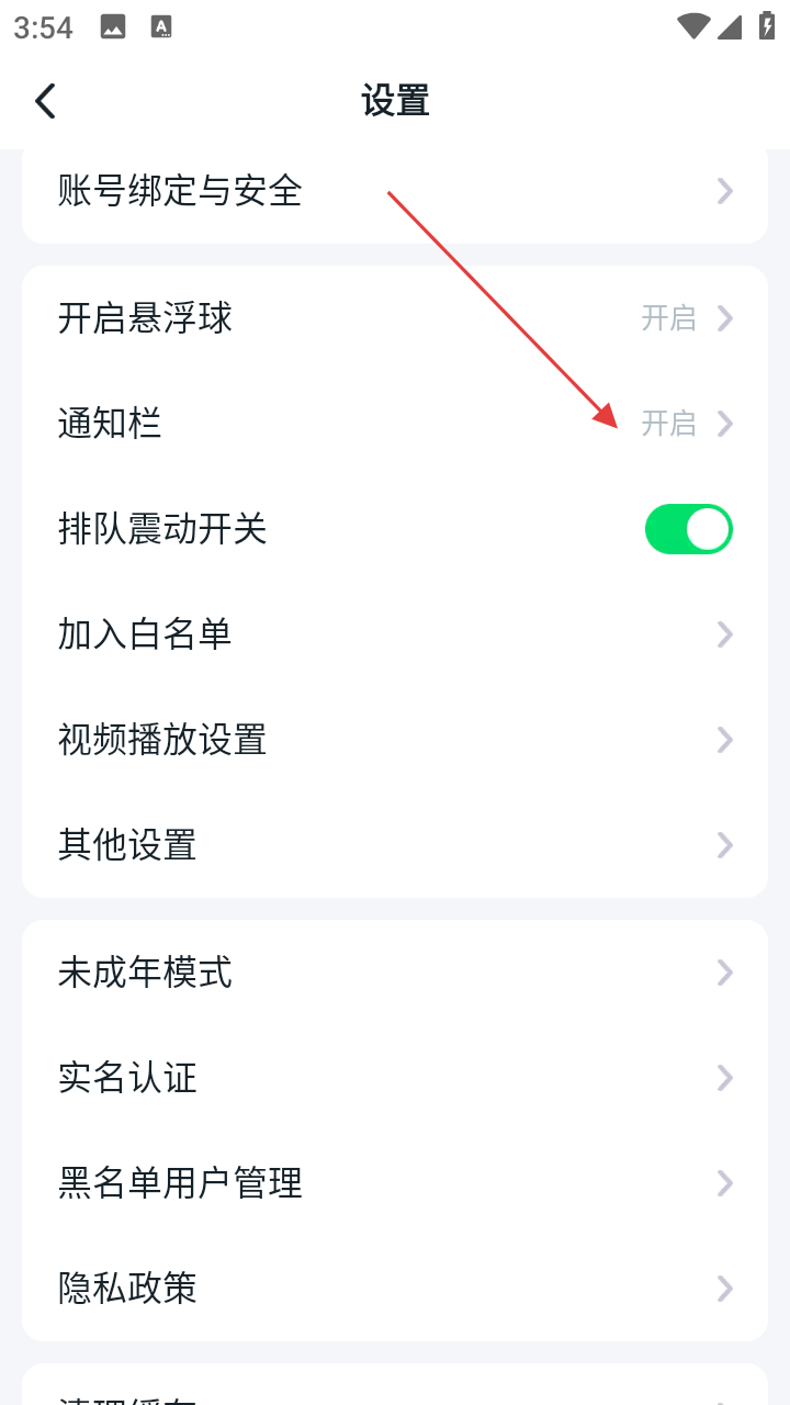3、在设置页面,若要设置通知栏,点击【通知栏】,进入通知栏相关设置页面。